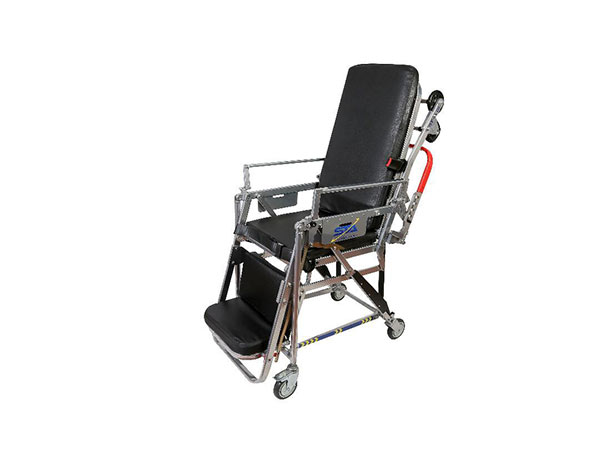 برانکارد آمبولانسی مدل ST-A01 یکی از انواع محبوب و پر کاربرد برانکارد به حساب می آید که برای جا به جا کردن سریع و ایمن بیماران به کار می رود. نام دیگر این برانکارد، پاچلاقی یا برانکارد اورژانس است و از مهم ترین مزایای آن امکان تبدیل شدن آن به صندلی به وسیله دو شکن آن است. در واقع توسط یک شکن، پشتی عمودی برای نشستن بیمار ایجاد شده و توسط شکن دیگر، یک جا برای قرار دادن پای بیمار ایجاد می شود. در مواردی که لازم باشد بیمار به صورت نشسته به بیمارستان انتقال پیدا کند از این حالت استفاده می شود که به سرعت تغییر حالت ایجاد می شود. علاوه بر این دارای چرخ است که هم به صورت برانکارد به راحتی حرکت داده می شود و هم به صورت صندلی. در صورت لزوم می توان این برانکارد را جمع کرده و در گوشه ای از آمبولانس قرار داد و جای بسیار کمی را اشغال می کند. در برانکاردهای پاچلاقی توجه به ایمنی بیمار بسیار مهم است. بندهایی باید وجود داشته باشند که روی بدن بیمار بسته شده و وی را ثابت نگه دارند. علاوه بر این ضد عفونی کردن برانکارد با توجه به این که در محیط های مختلف و در تماس با بیماران مختلف قرار می گیرد اهمیت زیادی دارد و برانکارد باید در برابر مواد ضد عفونی کننده مقاوم باشد. هم چنین با تحمل وزن بیماران مختلف نباید به مرور فرم آن تغییر کند یا آسیب ببیند.